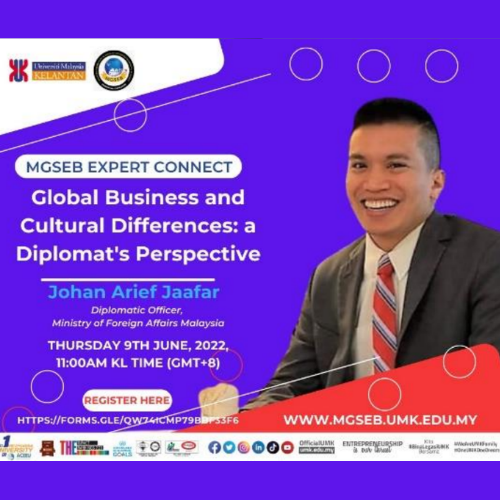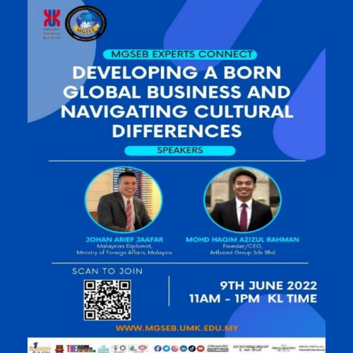 MGSEB Experts Connect was a webinar session organized by Malaysian Graduate School of Entrepreneurship and Business. It discussed the topic of developing a born global business and navigating cultural differences. The webinar invited entrepreneurs who have successfully expanded their businesses across borders and cultures to share their tips and lessons learned.
