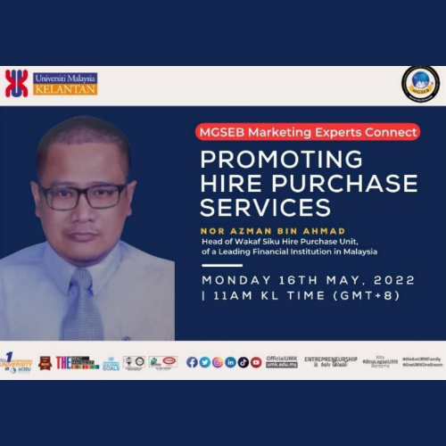 MGSEB Marketing Experts Connect was a webinar session organized by Malaysian Graduate School of Entrepreneurship and Business. It focused on the topic of promoting hire purchase services in the current economic situation. The webinar invited experts from the hire purchase industry to share their best practices and strategies for attracting and retaining customers.