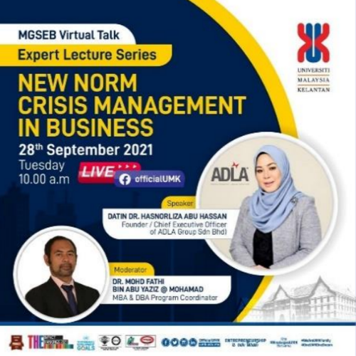 MGSEB Virtual Talk: Expert Lecture Series "New Norm Crisis Management In Business" was a series of online sessions that featured speakers from various industries who shared their insights and expertise on topics related to crisis management in business. The sessions covered topics such as the types and sources of crises, the stages and strategies of crisis management, the best practices and lessons learned from crisis cases, and the future trends and chall.. Read More..
