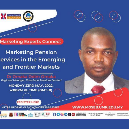 Marketing Experts Connect was a webinar series organized by Malaysian Graduate School of Entrepreneurship and Business. It explored the topic of marketing pension services in the emerging and frontier markets. The webinar featured speakers from various pension service providers who discussed the challenges and opportunities of reaching and serving the untapped markets.