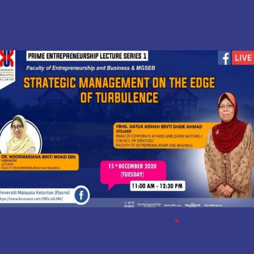 Strategic Management on The Edge of Turbulence was a prime entrepreneurship lecture series that aimed to equip participants with the skills and knowledge to manage strategic issues in turbulent and uncertain environments. The lecture covered topics such as environmental scanning, scenario planning, strategic agility, and crisis management. The lecture also involved interactive activities and case studies that allowed participants to apply the concepts and tools lear.. Read More..
