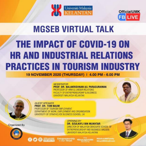 The tourism industry is one of the hardest hit sectors by the Covid-19 pandemic, affecting millions of workers and businesses worldwide. How can HR and industrial relations practitioners cope with the challenges and opportunities brought by the pandemic? MGSEB Virtual Talk is a series of online sessions that aims to provide insights and perspectives on various topics related to entrepreneurship and business.