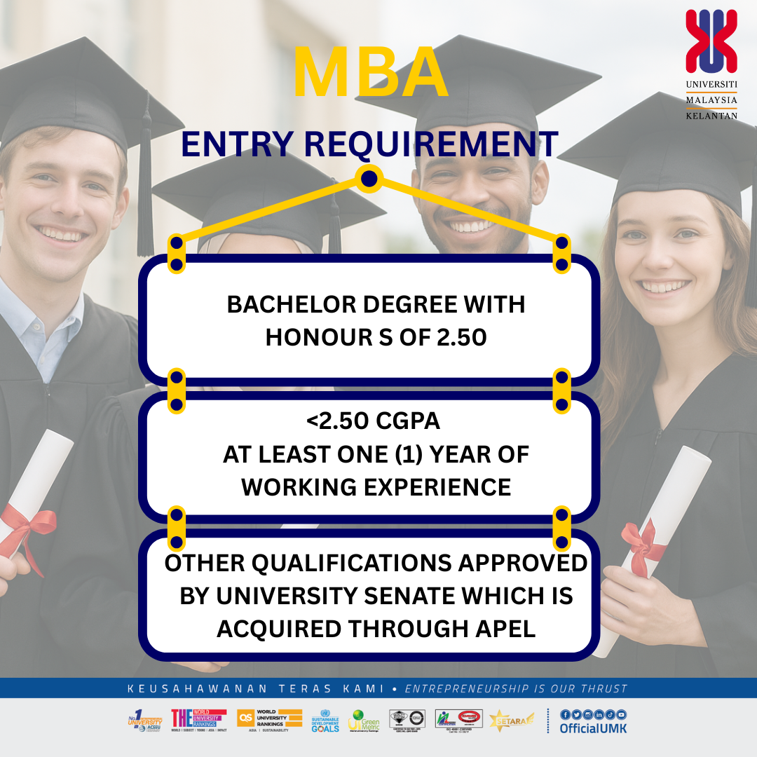 Here are the entry requirements for the MBA Programme at MGSEB UMK