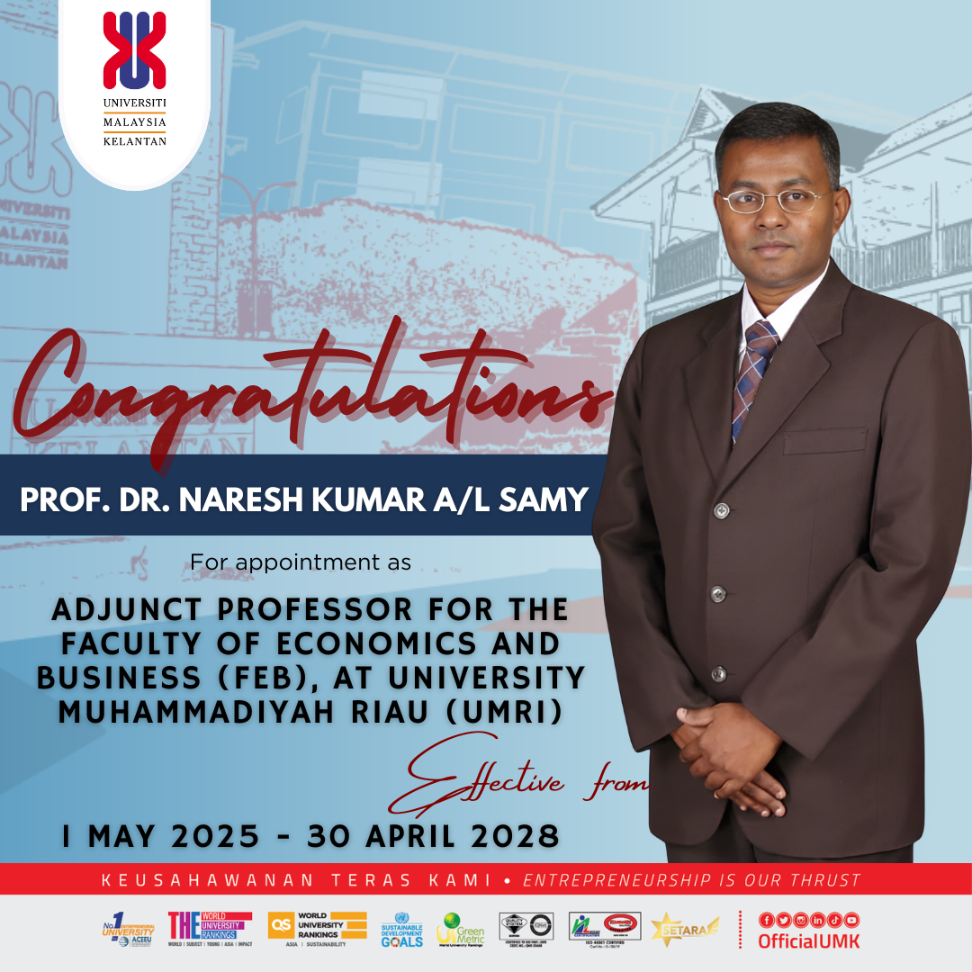 On your appointment as Adjunct Professor at the Faculty of Economics and Business (FEB), University Muhammadiyah Riau (UMRI).