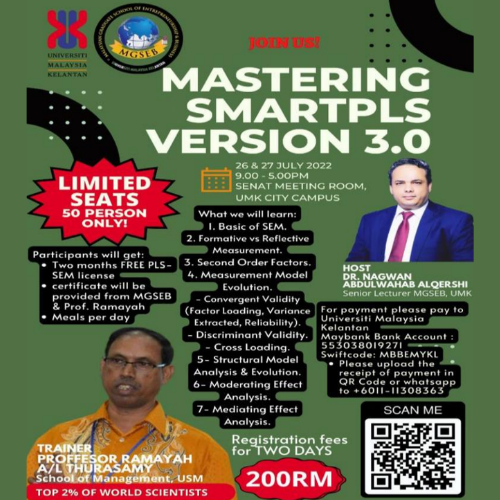 Master the fundamentals and advanced techniques of SmartPLS Version 3.0 with renowned trainer Professor Ramayah Althurssamy (Top 2% World Scientist).