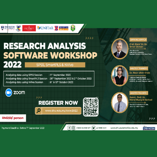 Join this comprehensive workshop and learn data analysis methods using three major research software: SPSS, SmartPLS, and NVivo — with a lineup of expert speakers and trainers in their respective fields.